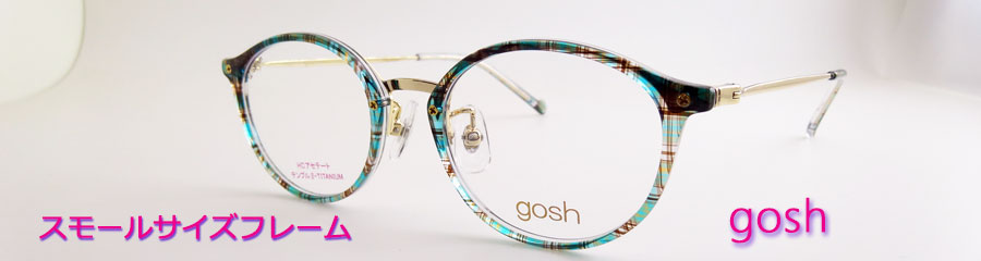 国産のお洒落なフレーム『GOSH』ゴッシュのスモールフレーム(小さめフレーム)『gosh』です。大人フレームは大文字の 『 GOSH 』 ・ スモールフレームは小文字の 『 gosh 』 表記になっています。