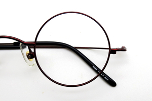 丸メガネは玉形が丸なのでみんな同じようにも思えますが、ちょっとした違いで、風味が変わってきます。大別すると玉型が、真円になっているものと、そうではないものと分けられ、楕円の中にも真円に近いけれど、やや横長になっていて一見真円に見える、というものと丸っぽいけれど楕円というのがはっきりわかるものに分けられます。丸メガネ研究会ではやや横長になっていて一見真円に見えるものを「疑似真円」と呼んでおります。製品によっては疑似真円の丸メガネを真円で作ることは可能です。(テンプルやブリッジの接合位置によって無理なものもあります。)真円の丸メガネは独特なテイストがありますので、真円にこだわりを持つ丸メガネ愛好家のかたも多くいらっしゃいます。その反対に丸メガネは初めてで顔になじみやすい疑似真円が掛けやすいというかたもいらっしゃいます。戦前はすべて真円で、戦後になってから真円に近い楕円のものが出てきました。